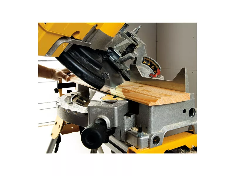 - Der in der Ebene gebohrte Säge- und Drehtisch garantiert perfekte Schnittergebnisse