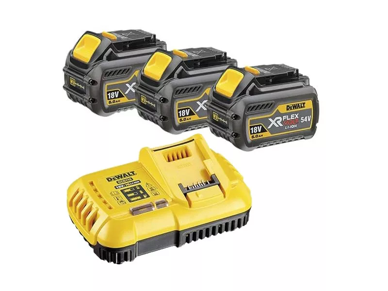 DEWALT FlexVolt Akkumulátor és gyorstöltő szett 18 V (3 x 6 Ah akku) DCB118T3