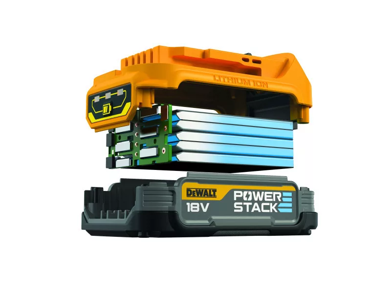 • Der kompakte 18 V XR POWERSTACK™ Akku ist der erste Akku der Welt, der die Flachzellen-Technologie in der Bauindustrie verwendet.