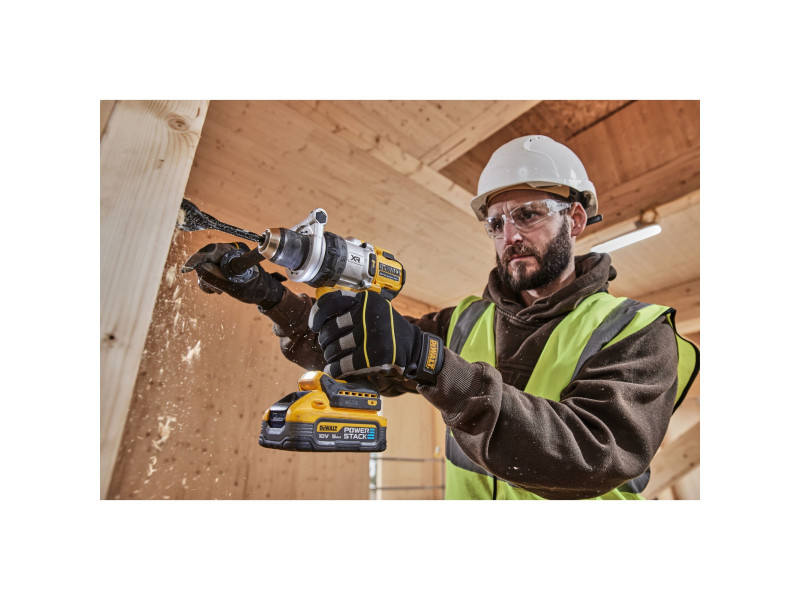 Der 18 V XR® bürstenlose ½ Zoll 3-Gang-Schlagbohrschrauber kann für eine Vielzahl anspruchsvoller Aufgaben eingesetzt werden. Mit unserem leistungsstärksten 18 V Schlagbohrschrauber** können Sie mit einer einzigen Ladung† bis zu 275 Löcher bohren, während das ANTI-ROTATION-System das Werkzeug bei übermäßiger Drehbewegung abschaltet. Dank seiner vollständig aus Metall gefertigten Antriebsstruktur hält er hohen Belastungsanwendungen gut stand. Der 3-Gang-Schlagbohrschrauber verfügt über eine dreistufige, einstellbare LED, die dazu beiträgt, schlecht beleuchtete Arbeitsbereiche zu erleuchten.