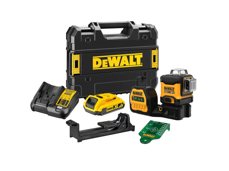 DEWALT Akku-Kreuzlinienlaser 12-18 V (grün) (1 x 2,0 Ah Akku + Ladegerät) DCE089D1G18