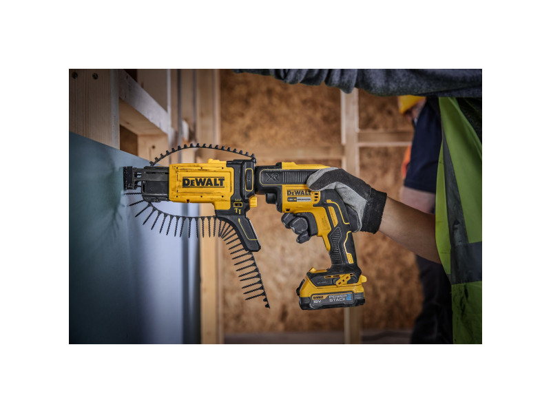 DEWALT Akku-Gipskartonschrauber + Magazin 18 V ohne Kohlebürste (1 x 1,7 Ah Akku + TSTAK) DCF6