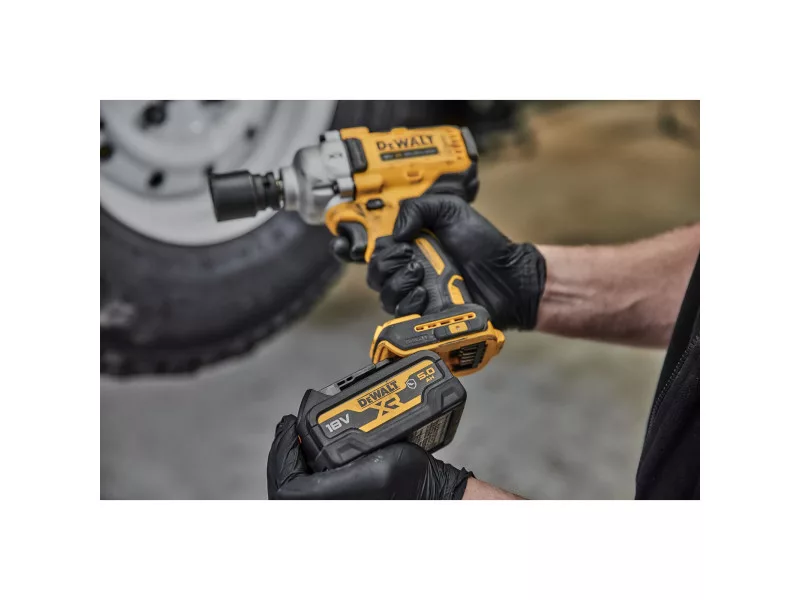 DEWALT Akkus ütvecsavarozó 18 V szk. nélküli 1/2" 812 Nm (2 x 5,0 Ah akku + töltő + gumiburkolat)