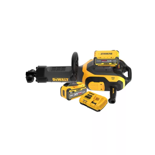Geliefert mit: 15,0 Ah XR FLEXVOLT Akkupack mit Ladezustandsanzeige, Multispannungsladegerät, Mehrpositionen-Seitengriff, 28 mm HEX Flachmeißel