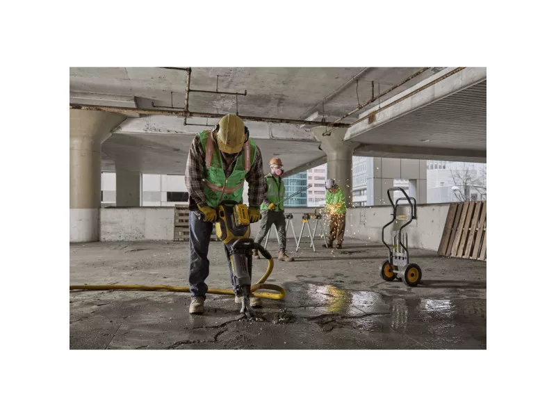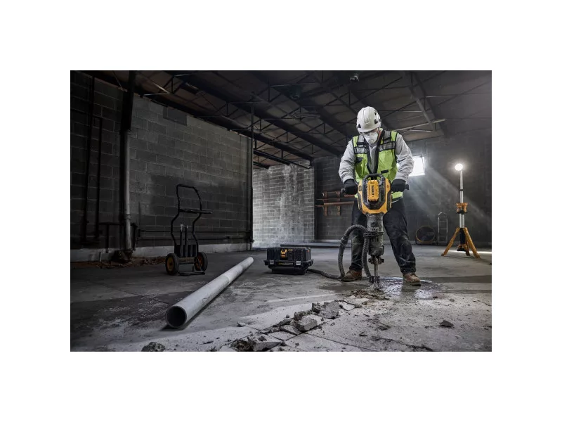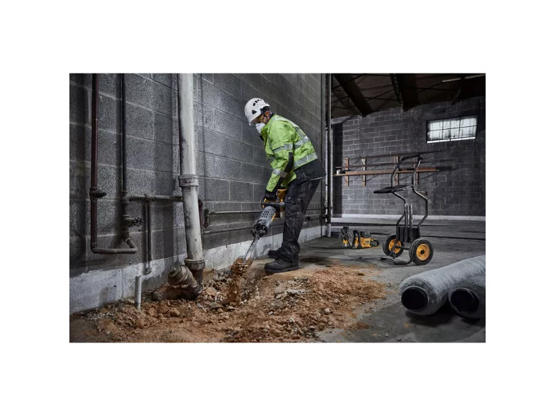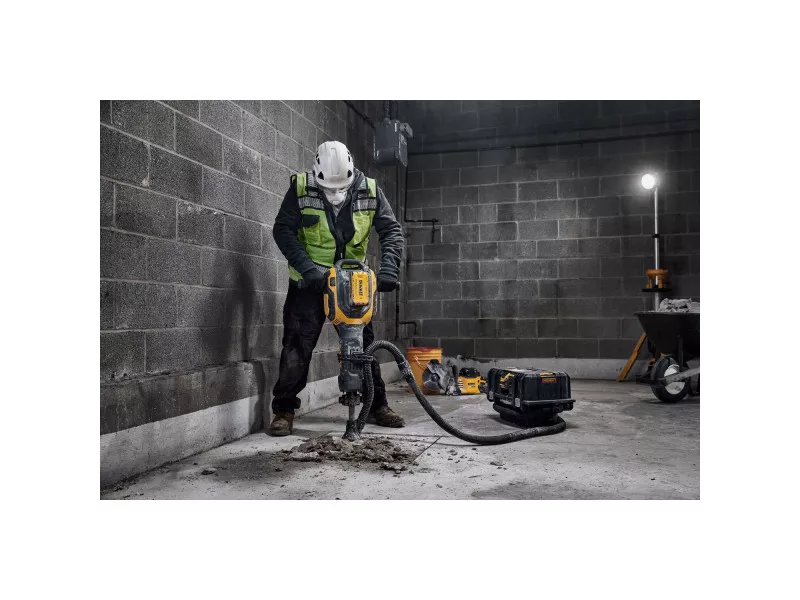 KABELGEBUNDENE LEISTUNG. KABELLOSE FREIHEIT. Der DEWALT 54 V bürstenlose Motor und der 15 Ah Hochkapazitätsakku liefern 41 Joule Schlagenergie für die härtesten Abbrucharbeiten vor Ort. Trotz seiner hohen Leistung hat der DCH911 einen branchenführenden Vibrationswert von 6,1 m/s2 dank des schwebenden Handgriff-Mechanismus. Die kabellose Werkzeugsteuerung ermöglicht das automatische Ein- und Ausschalten der Staubabsaugung bei Verwendung des akkubetriebenen M-Klasse Staubsaugers DCV586M.