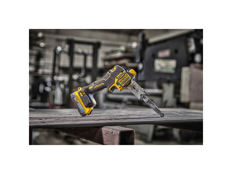 Der DCM200 Bandschleifer wurde für Aufgaben mit einer Drehzahl von bis zu 1700 m/min entwickelt. Diese Leistung wird durch einen Geschwindigkeitsregler und eine variable Geschwindigkeitsscheibe reguliert. Der um 173° drehbare Arm ermöglicht es, die Vorteile der Tragbarkeit und Vielseitigkeit voll auszuschöpfen und sorgt für eine einfache Handhabung auch an schwer zugänglichen Stellen. Kombiniert mit einer drehbaren LED zur Beleuchtung des Arbeitsbereichs und einem werkzeuglosen Riemenwechsel bietet der DCM200 Komfort, Mobilität und Vielseitigkeit. Er ist mit über 250 Produkten im 18V XR System kompatibel.