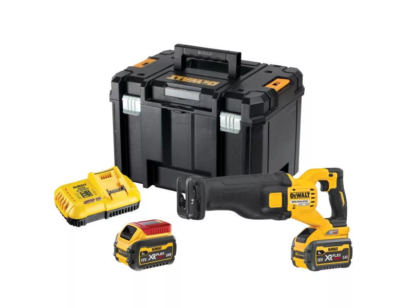 DEWALT Akku-Säbelsäge 18 V ohne Kohlebürsten (2 x 6,0 Ah Akku + Ladegerät) DCS389T2
