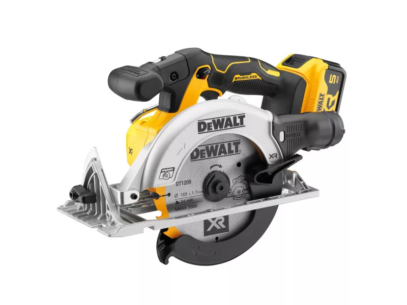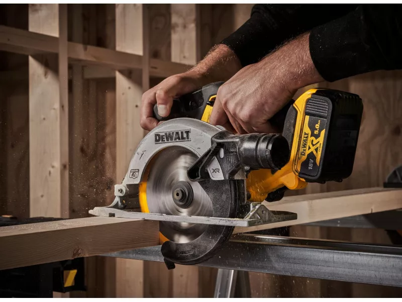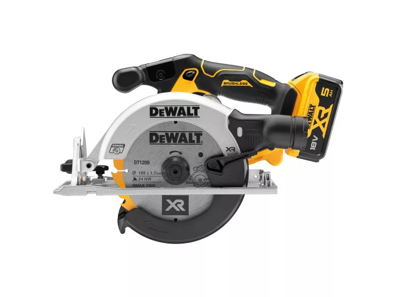 DEWALT Akku-Kreissäge 18 V ohne Kohlebürste (2 x 5,0 Ah Akkus + Ladegerät) DCS565P2