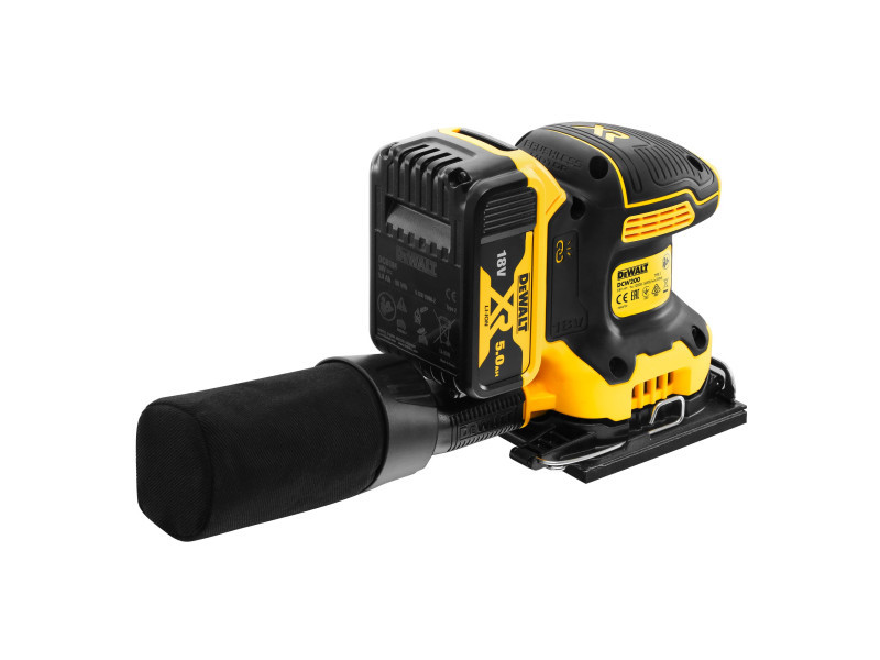 DEWALT Akkus excenter csiszoló 18 V szénkefe nélküli (2 x 5,0 Ah akku + töltő) DCW200P2