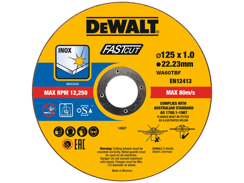 DEWALT Trennscheibe für Metall 125 x 1,0 x 22,2 mm inox WA60TBF im Eimer (100 Stück)