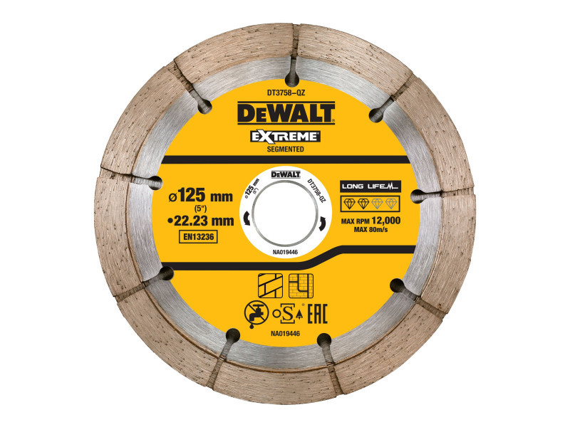 DEWALT Diamant-Trennscheibe segmentiert 125 x 22,2 mm Doppelscheibe