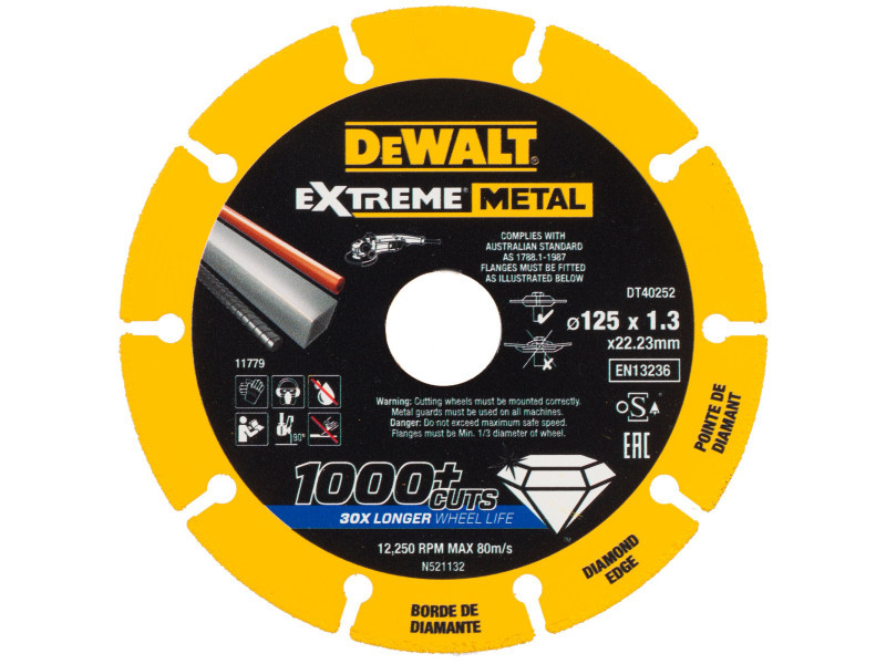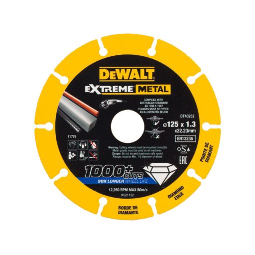 Die EXTREME Metallschneidscheiben verfügen über Diamanttechnologie für außergewöhnliche Langlebigkeit und maximale Arbeitseffizienz. Sie führen mehr als 1000 Schnitte durch, mehr als 30 Mal mehr als dünne Bindungsschneidsteine.