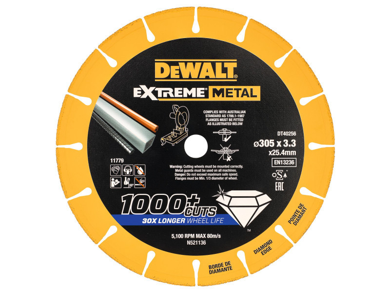 DEWALT EXTREME METAL Diamant-Trennscheibe für Metall 300 x 3,3 x 25,4 mm (Metall/Alu/Edelstahl)