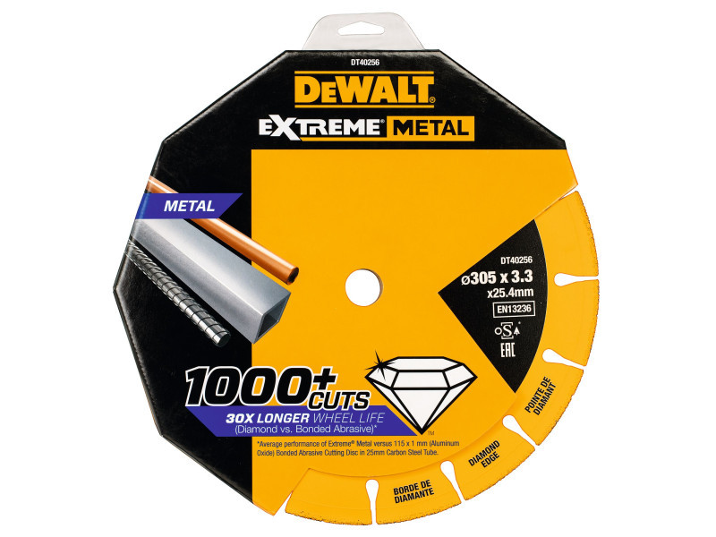 Die EXTREME Metallschneidscheiben verfügen über Diamanttechnologie für außergewöhnliche Haltbarkeit und maximale Arbeitsleistung. Sie führen mehr als 1000 Schnitte durch, das sind mehr als 30 mal mehr als dünne Bindungsschneidsteine.