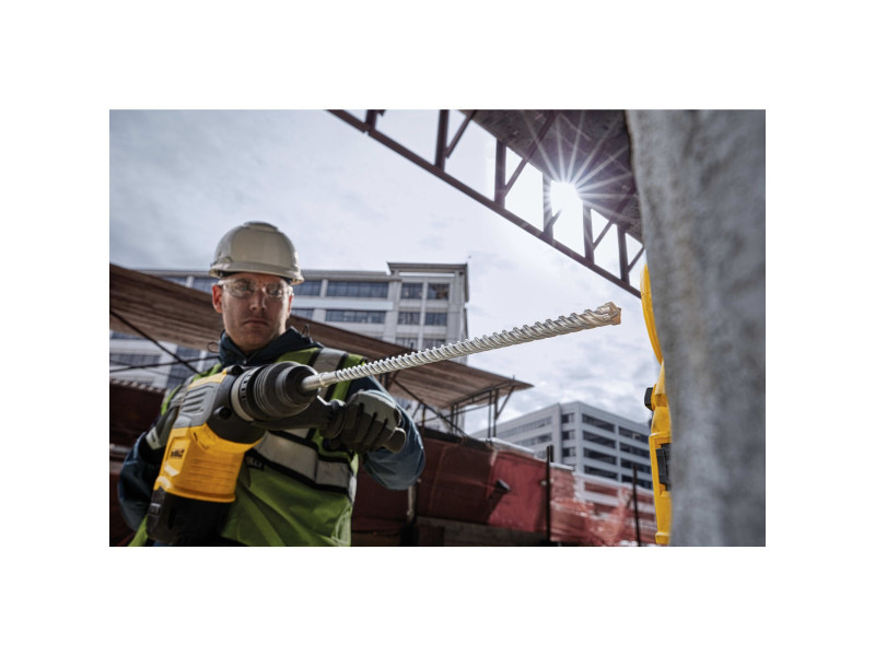 Die XLR SDS Max Bohrer erzeugen mit ihren soliden Karbid-Bohrspitzen weniger Vibrationen. Die vier Nutenbohrschrauben verhindern Ansammlungen in der Bewehrung, entfernen effektiv und schnell Verschmutzungen und gewährleisten so den effizienten Betrieb des Bohrers und der Bohrmaschine.