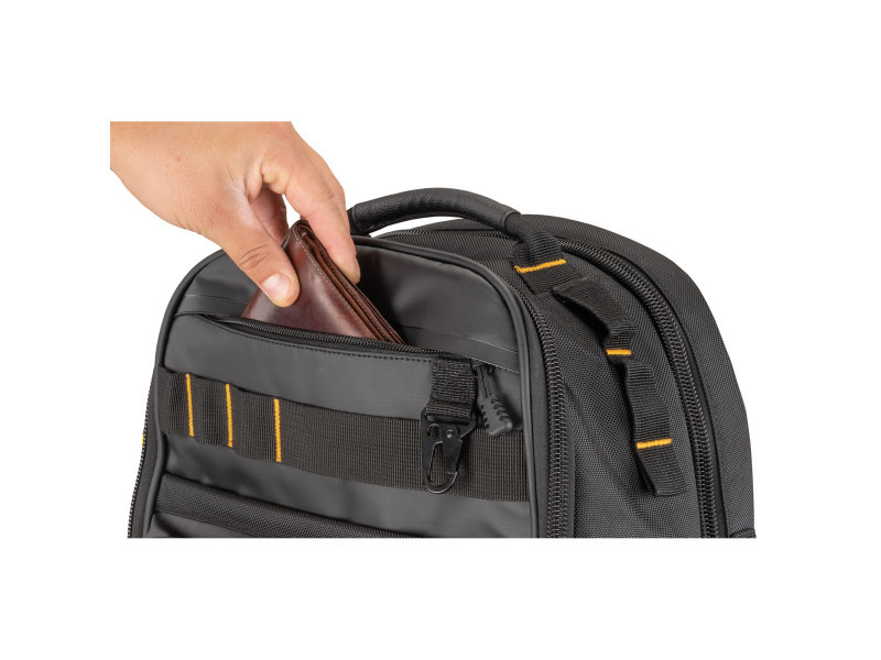• Behalten Sie Ihre Werkzeuge, Wertsachen und elektronischen Geräte mit dem DEWALT® Pro Rucksack griffbereit.