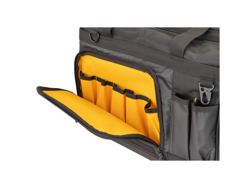 Die DEWALT DWST60104-1 ist eine 20-Zoll (508 mm) Werkzeugtasche, die für Langlebigkeit und Praktikabilität entworfen wurde. Durch die vollständig öffnende Oberfläche der Tasche ist der Inhalt leicht einsehbar und zugänglich. Das Innendesign ermöglicht einen ungehinderten Zugriff auf die Werkzeuge.