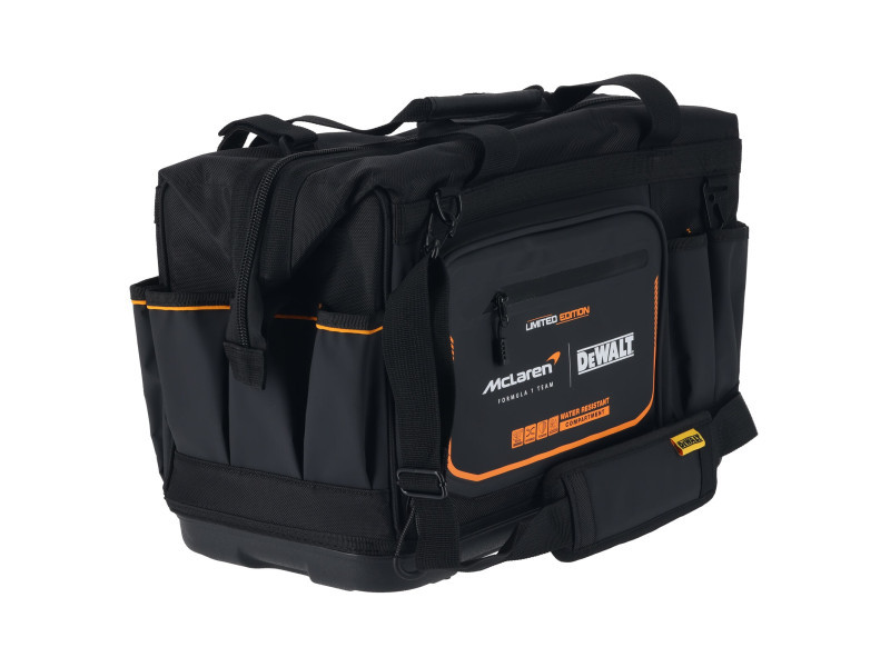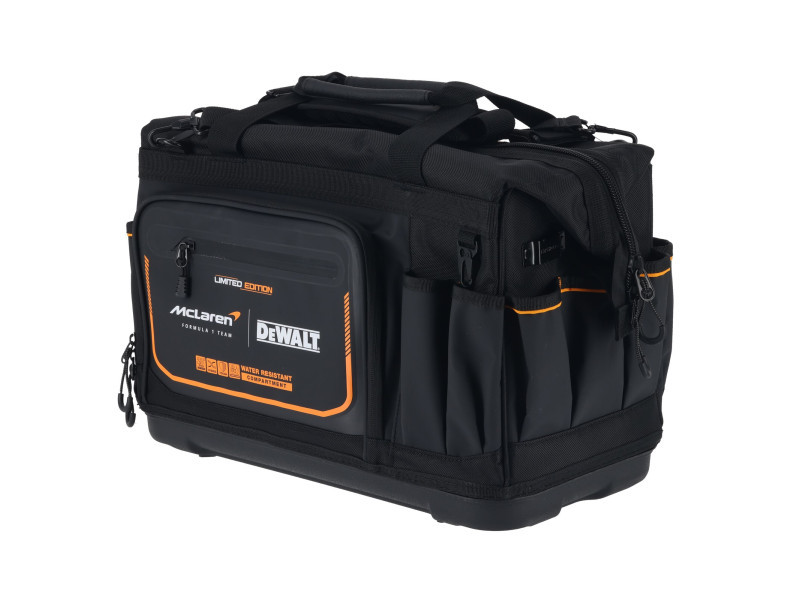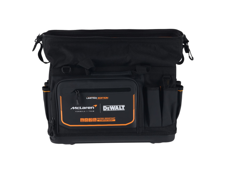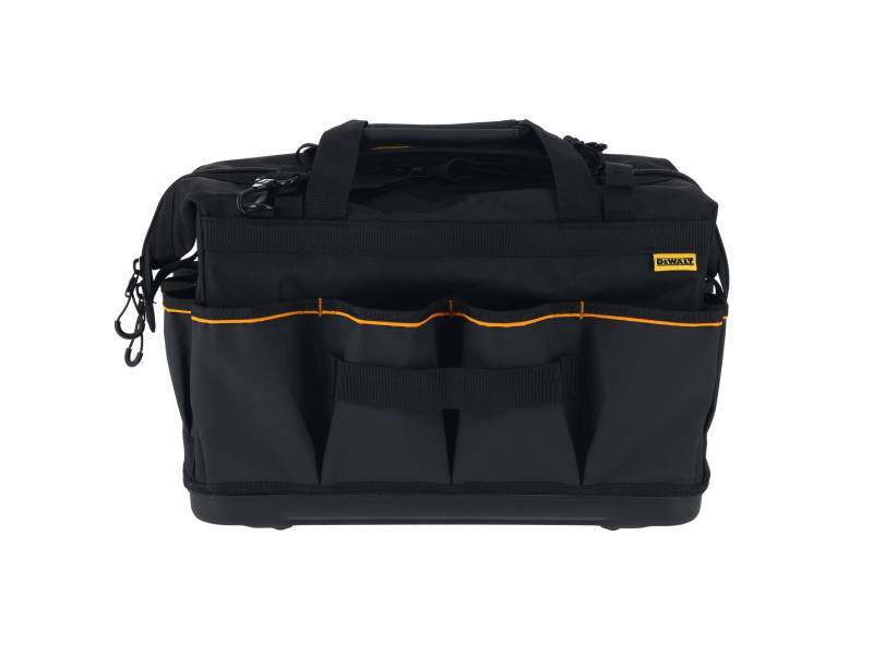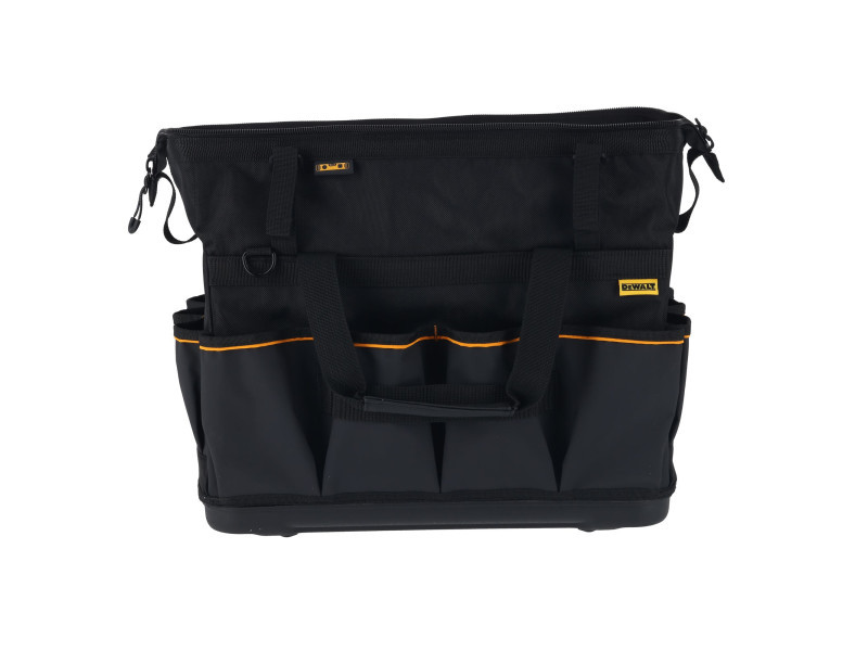 Optimieren Sie die Sichtbarkeit und Zugänglichkeit Ihrer Werkzeuge während der Arbeit mit der DEWALT® 20-Zoll Pro Open Mouth Werkzeugtasche. Die robuste Konstruktion und weiche Aufbewahrungslösung mit IP54 wasserdichtem Fach schützt die Gegenstände und hält die Werkzeuge griffbereit.