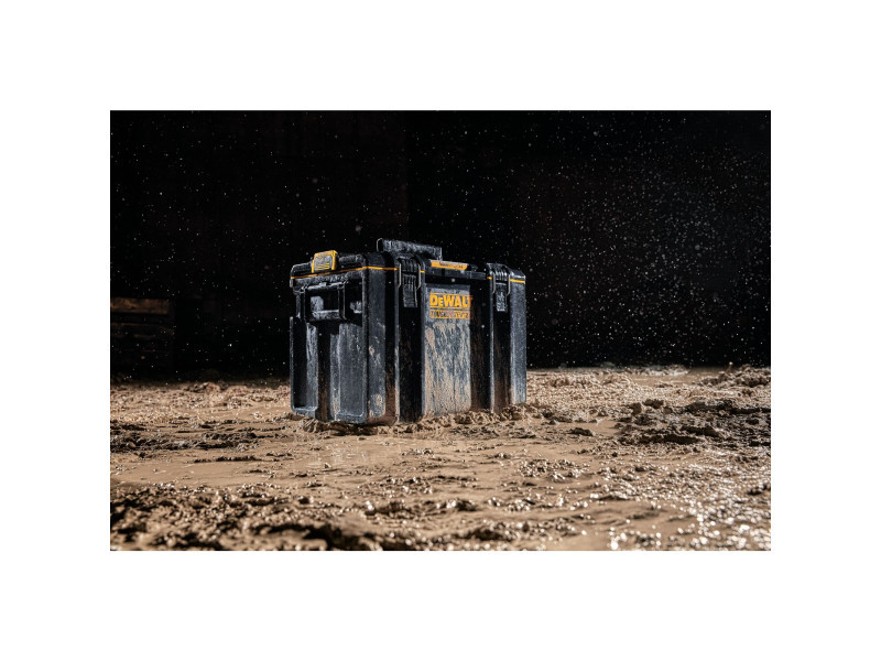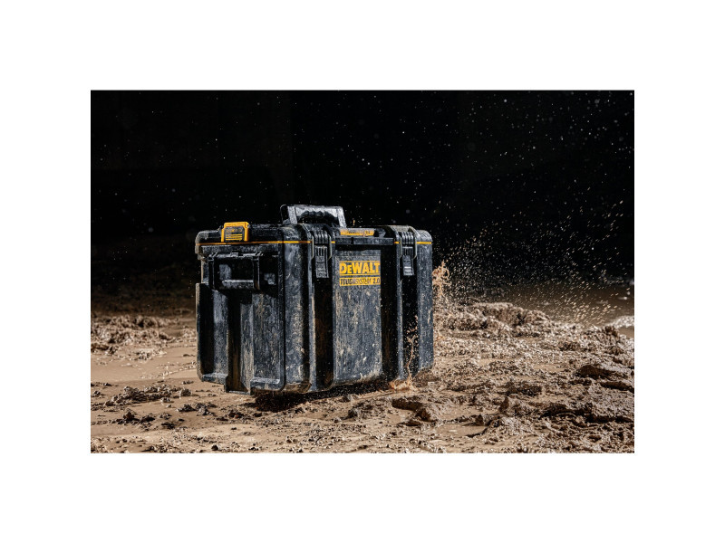 Die ToughSystem 2.0 DS400 Werkzeugkiste ist mit patentierten, automatischen Seitenverschlüssen ausgestattet, was eine einfache, einhändige Bedienung ermöglicht. Die zweiteiligen, metallischen Frontverschlüsse bieten eine höhere Haltbarkeit, wenn Werkzeuge in der Box sind. Sie ist staub- und wasserdicht nach IP65-Klassifikation und hat eine Tragfähigkeit von 50 kg. Das Innentablett der Werkzeugkiste ist abnehmbar, so dass die Elemente optimal organisiert werden können. Die ToughSystem 2.0 Werkzeugkiste ist mit allen ToughSystem Produkten kompatibel.