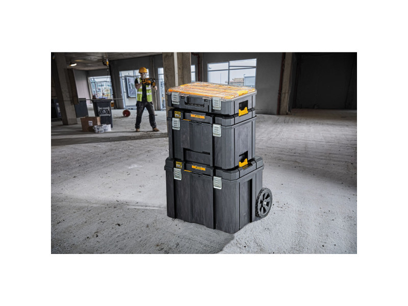 DEWALT TRACKER READY – Der eingebaute Befestigungspunkt im TSTAK Koffer ermöglicht die Installation des DEWALT Trackers und die Verfolgung des Koffers mit DEWALT Tool Connect.