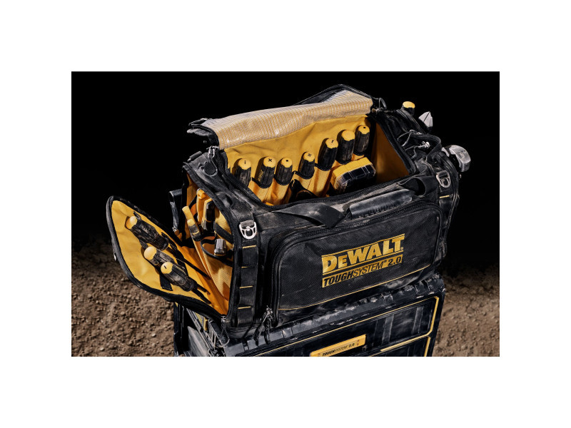 Die DeWALT ToughSystem 2.0 Tasche DWST83522-1 ist kompatibel mit allen Dewalt TOUGHSYSTEM 2.0 Modulen, d.h. die Tasche kann zum DeWALT ToughSystem Werkzeugwagen oder zu anderen Modulen hinzugefügt werden, um noch mehr Funktionalität und Mobilität zu erreichen.