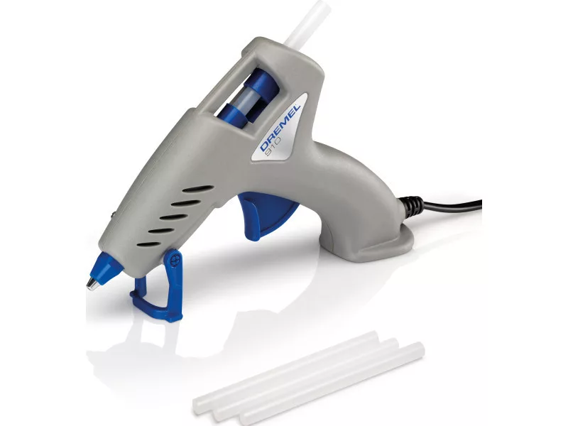 Der Dremel 940 ist eine Hochtemperatur-Klebepistole (195 °C) mit Präzisionsspitze und Tropfregler. Mit seinem abnehmbaren Kabel kann der 940 für bis zu 5 Minuten überall ohne Netzspannung verwendet werden. Dank seiner hervorragenden Komfortfunktionen (T-Griff, stabiler Standfuß, klappbarer Stützfuß) und auswechselbarer Spitze ist er ideal für leichte Heimwerkerarbeiten rund um das Haus, wie zum Beispiel Möbelreparatur, Holz- und Keramikverklebungen.