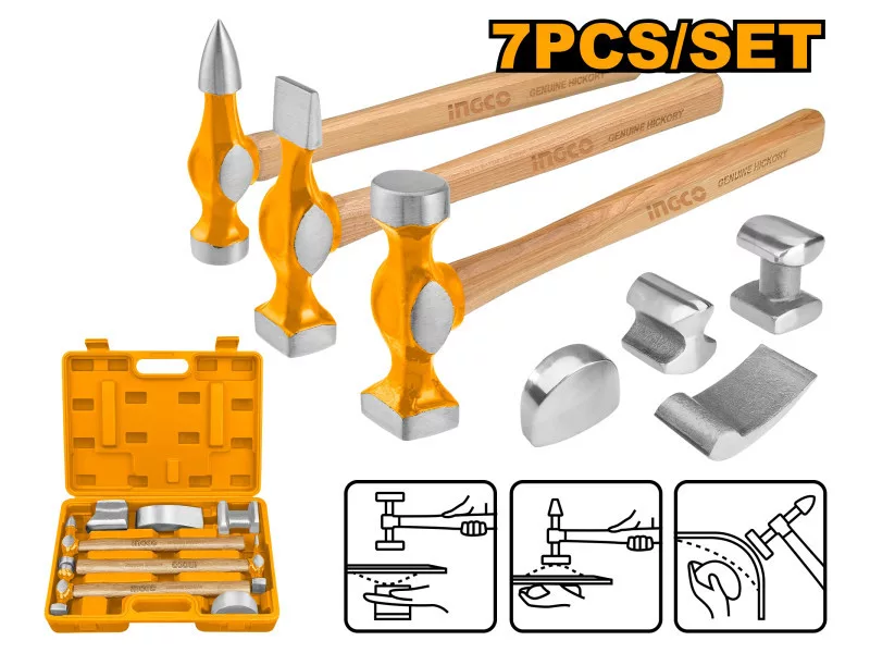 Der mitgelieferte Hammer ist aus hochwertigem, kohlenstoffreichem Stahl geschmiedet, mit einem rutschfesten Fiberglasgriff und einer weichen Gummischicht.
