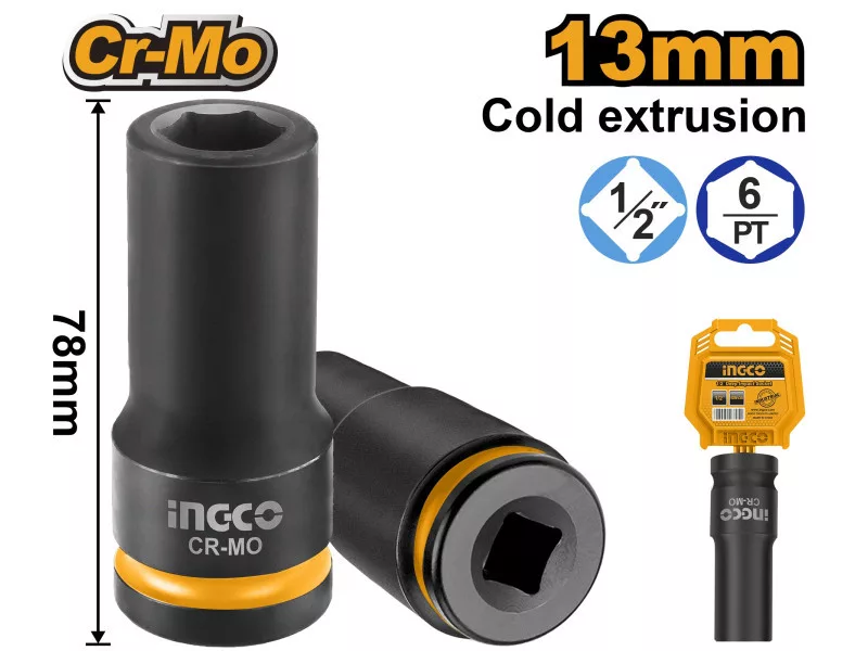 INGCO Langer Maschinen-Steckschlüssel 1/2" 13 mm CrMo