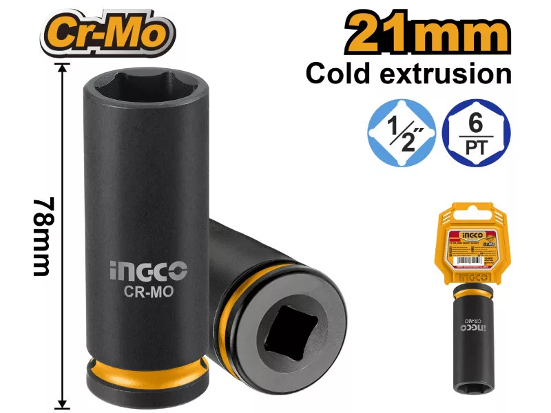 INGCO Langer Maschinen-Steckschlüssel 1/2" 21 mm CrMo