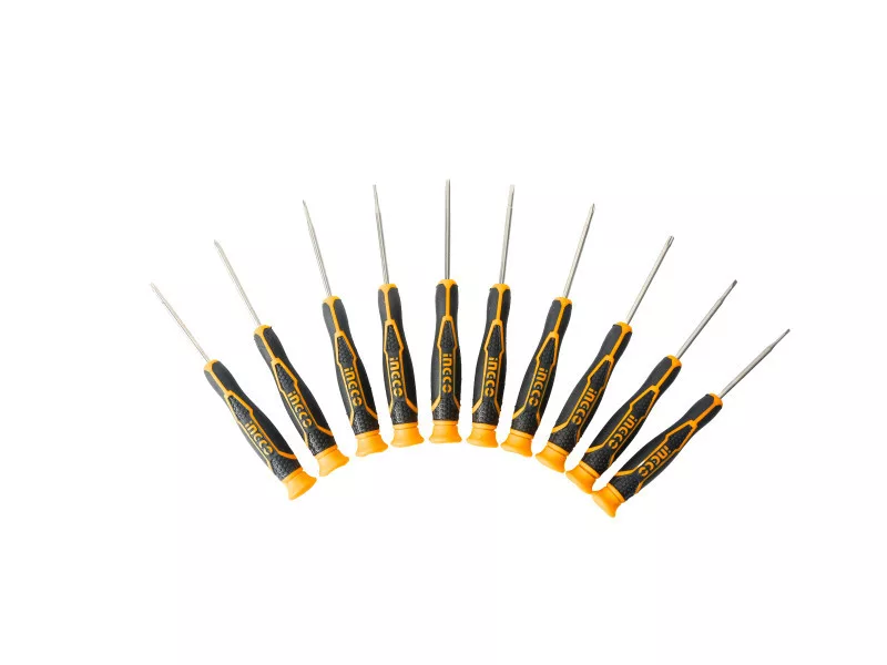 10 Präzisionsschraubenzieher: SL1.5 x 50, Sl2 x 50 mm, SL2.5 x 50, Sl3 x 50 mm, PH000 x 50, PH00 x 50 mm, PH0 x 50 mm, T6 x 50, T8 x 50, T10 x 50 mm