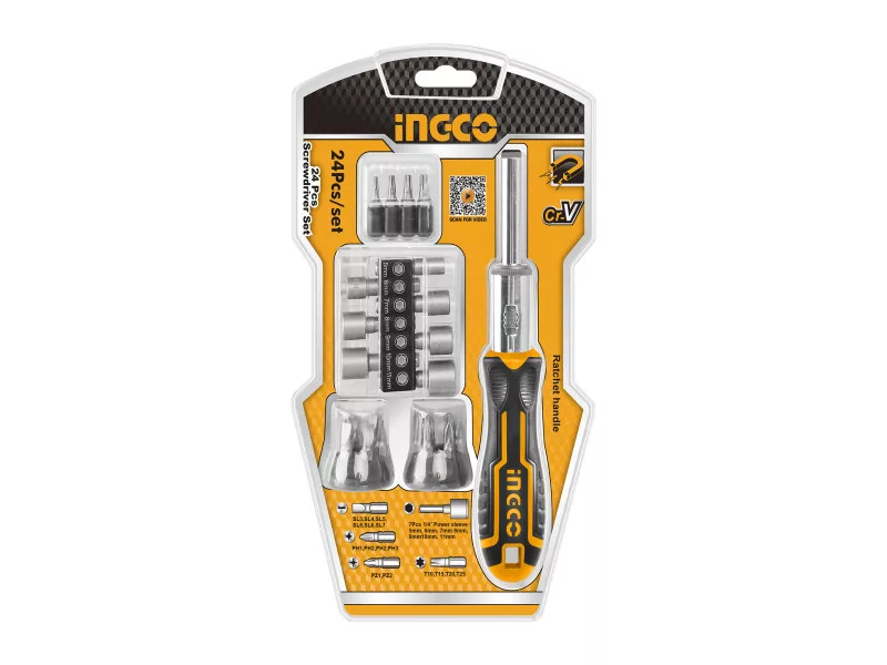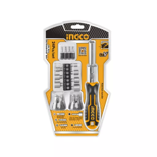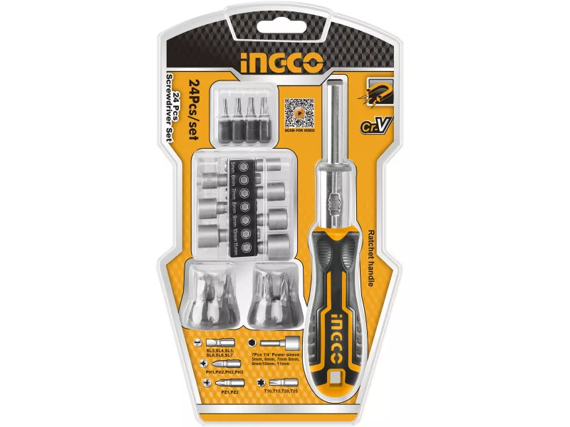 Lieferumfang: 16 Bits, 7 Schraubendreher, 1 Ratschenschraubendreher, in Blister verpackt