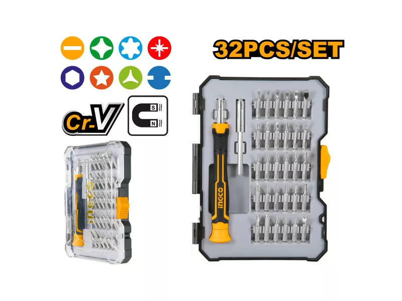 4 x 28 mm bitek: SL1.5, SL2, SL2.5, SL3, SL3.5, Sl4, PH000, PH00, PH0, Ph1, T4, T5, T6, T7, T8, T9, T10, T15, T20, H0.9, H1.3, H1.5, H2, H2.5, H3, H4, Y2, U2.6, Five Star 0.8, Five Star 1.2, Five Star 0.8, Five Star 1.2