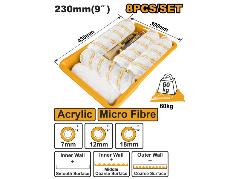 INGCO Festőhenger szett 8 részes 230 x 6 mm