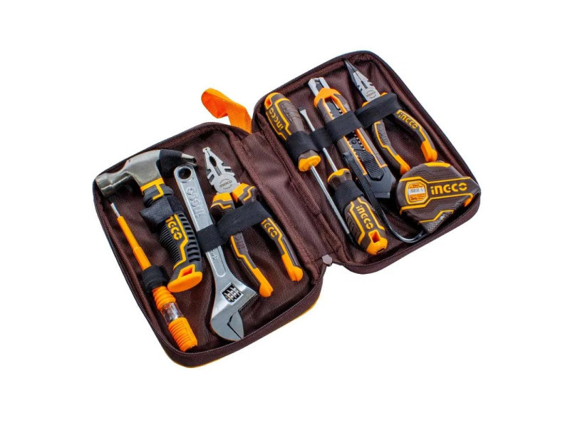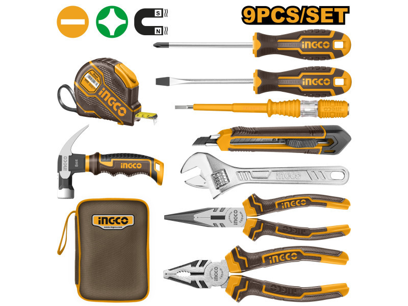Egy klasszikus, 9 darabos kéziszerszám-készlet, amely otthoni dekorációhoz, játékjavításhoz stb. alkalmas.