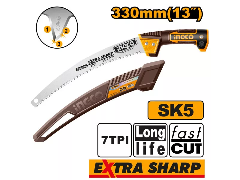 Dreiseitige Schärfe - keine Verklemmung, schnelleres Schneiden, scharfe Zähne, glatte Schnittfläche, leichte und effiziente Arbeit.