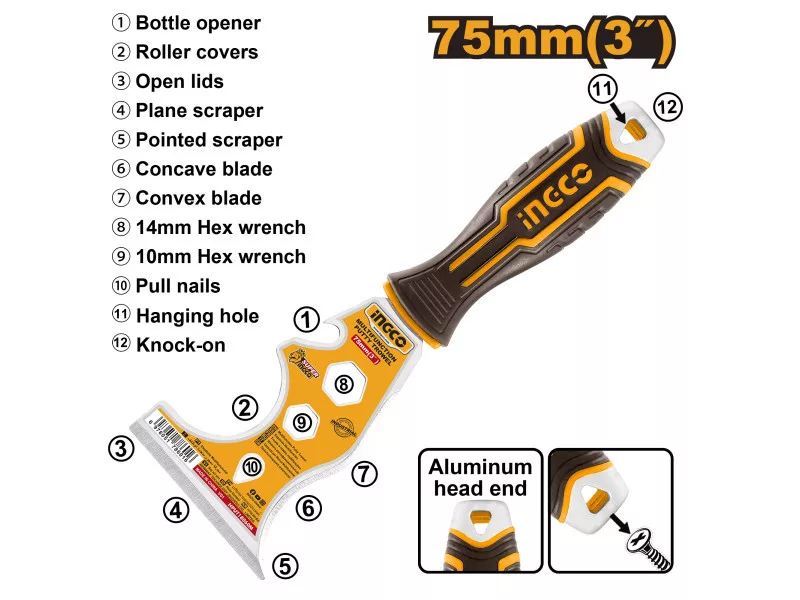 INGCO Multifunktions-Spachtel 75 mm Inox mit weichem Griff