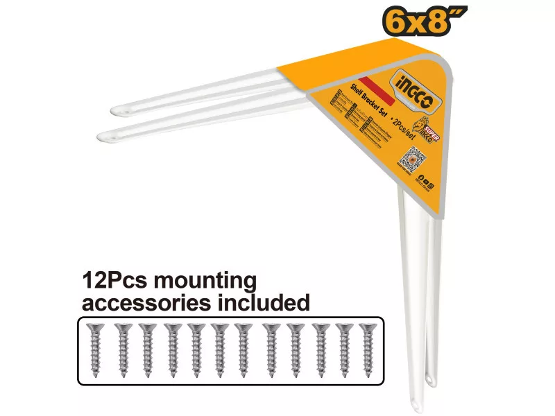 Lieferumfang: 2 Regalträger, 12 Befestigungsschrauben, Papierkartenverpackung