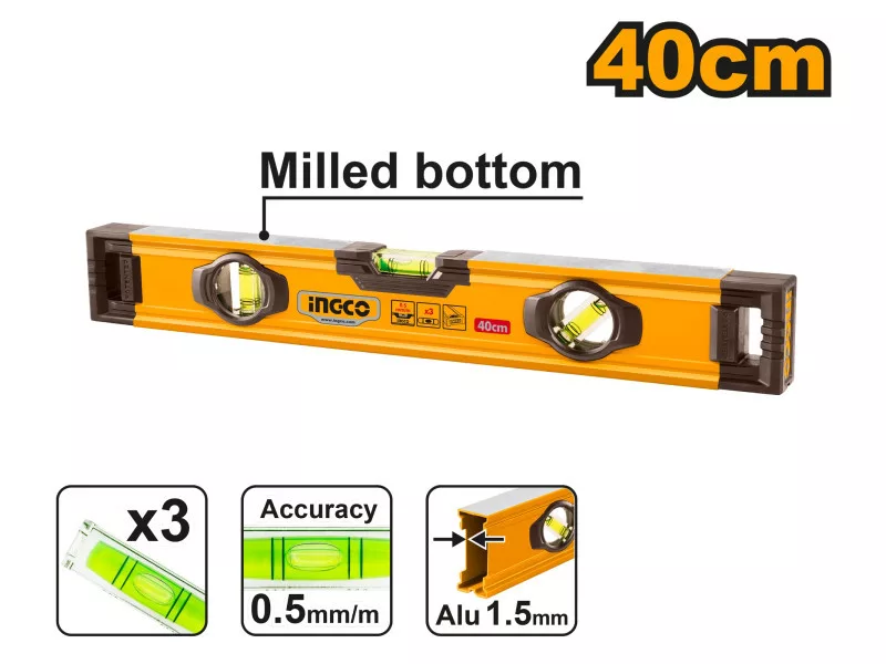 INGCO Wasserwaage 400 mm mit 3 Libellen