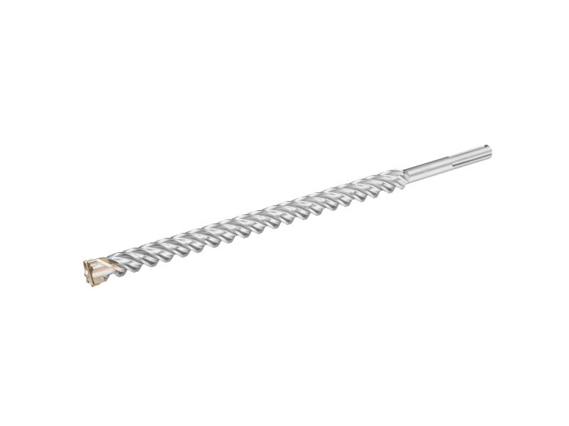 Die vierflächige Spitze sorgt für weniger Vibrationen, schnelleres Bohren, präzisere Löcher und eine bessere Befestigung. Der Bohrschaft ist für alle SDS-max Schlagbohrer geeignet.