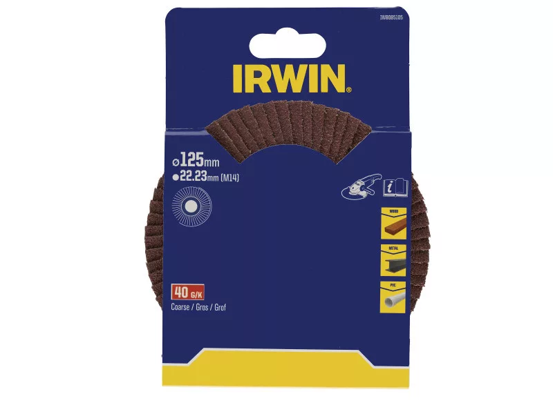 Die Irwin IW8085105 Lamellenschleifscheibe passt zu allen gängigen 125 mm Winkelschleifern.