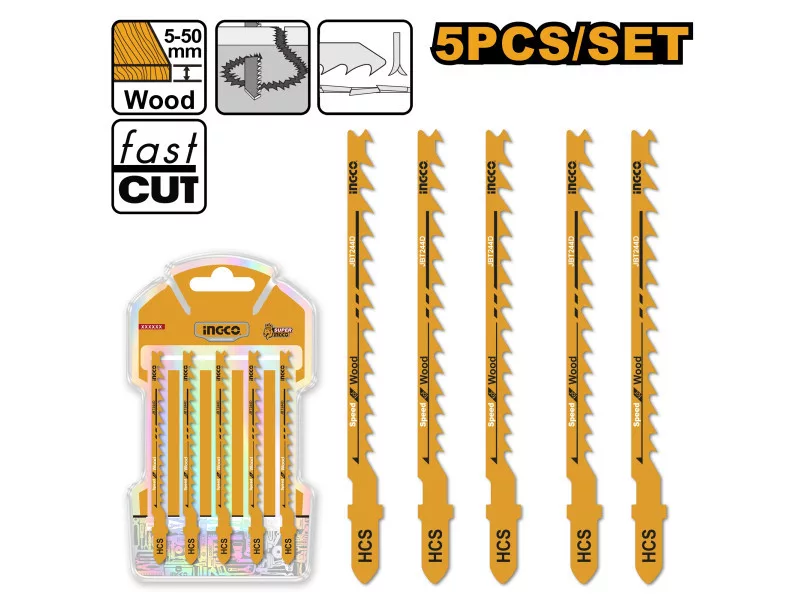 INGCO Stichsägeblatt für Holz 100/74 mm 6 TPI Kurvenschnitt HCS (5 Stück)