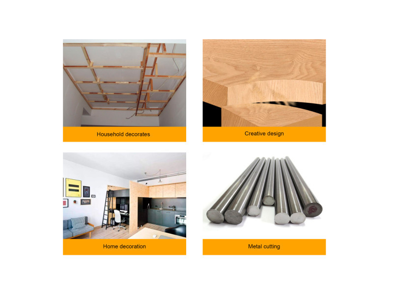 Das Elektrowerkzeug dient dazu, Trennschnitte und Ausschnitte in Holz, Kunststoff, Metallen, Keramikplatten und Gummi zu machen, während es fest auf dem Werkstück aufliegt. Es ist geeignet für gerade und gekrümmte Schnitte mit Schräg-/Gehrungswinkeln bis zu 45°. Achten Sie auf die Empfehlungen für das Sägeblatt.