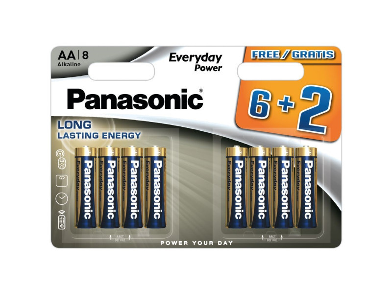 PANASONIC AA/Bleistift langlebige Alkalibatterie 1,5 V (8 Stück)