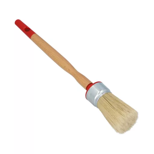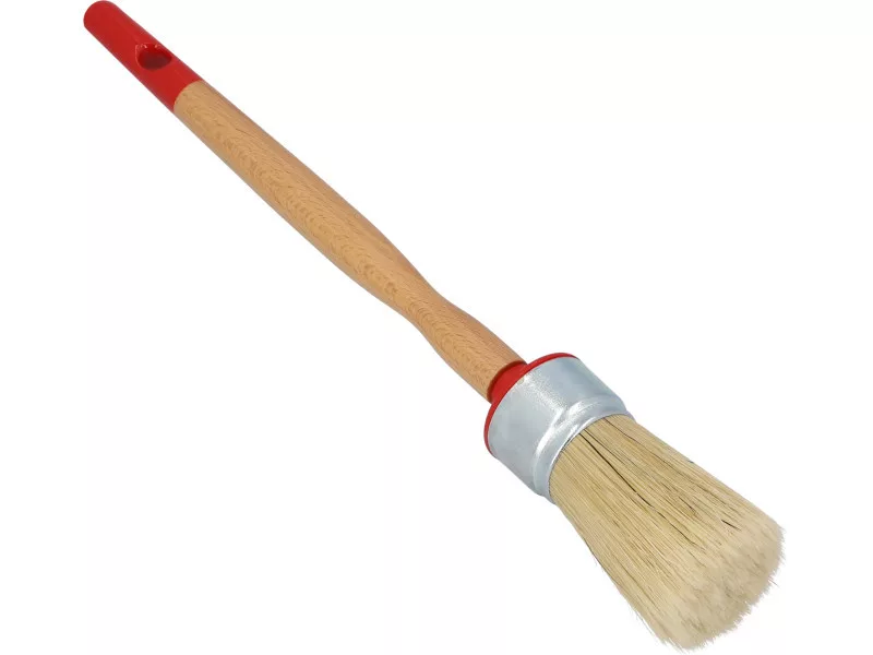 Der Brush Emalia Rundpinsel ist für das Streichen von unregelmäßigen Formen und rauen Oberflächen mit Öl-, Lösungsmittel- und Emailfarben geeignet. Die Borsten bestehen aus einer Mischung aus natürlichen Borsten und X-förmigen Fasern. Der Griff des Brush Emalia Rundpinsels ist aus lackiertem Buchenholz gefertigt. Die Hülse ist vernickelt.