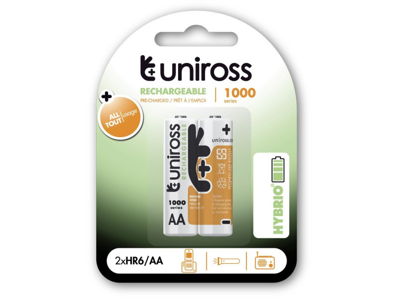 Die wiederaufladbaren Uniross-Akkus leisten mehr als ihre alkalischen Kollegen, da sie in 80% ihres Entladezyklus eine gleichmäßige Spannung liefern.