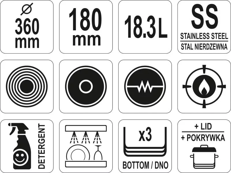 YATO GASTRO Mit Fußdeckel 18,3 Liter 360 x 180 mm Inox