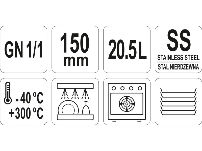 YATO GASTRO Inox-Einsatz 150 mm GN 1/1 YATO GASTRO Inox-Einsatz 150 mm GN 1/1