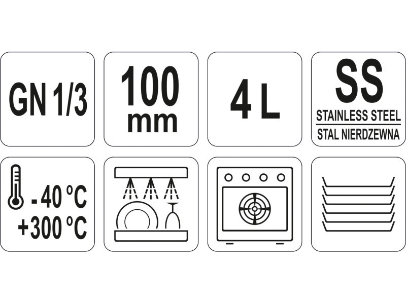 YATO GASTRO Inox-Einsatz 100 mm GN 1/3 YATO GASTRO Inox-Einsatz 100 mm GN 1/3