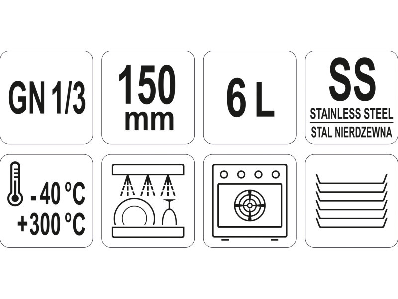 YATO GASTRO Inox-Einsatz 150 mm GN 1/3 YATO GASTRO Inox-Einsatz 150 mm GN 1/3