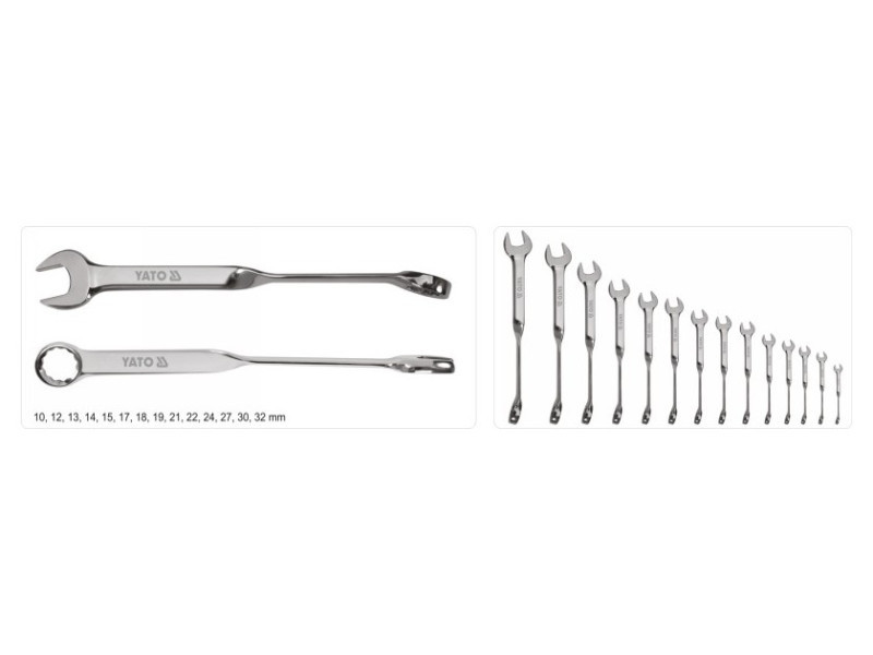 Set of twisted open-ended wrenches 10 - 32mm by YATO YT-01865.Wrenches made of high-quality steel.Ergonomic twisted shape facilitates work and provides great comfort, especially in the case of heavily seized screws.